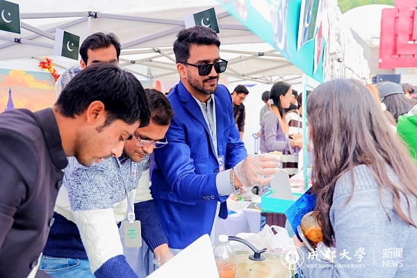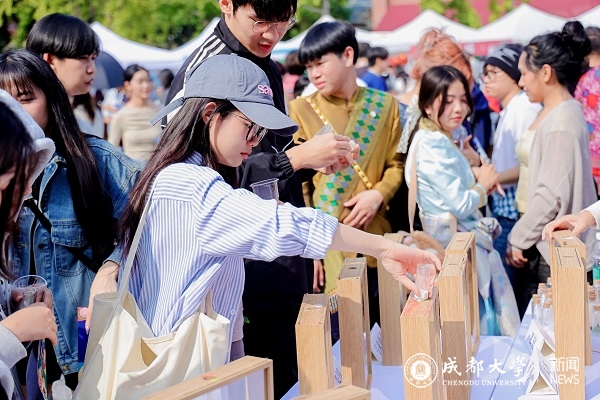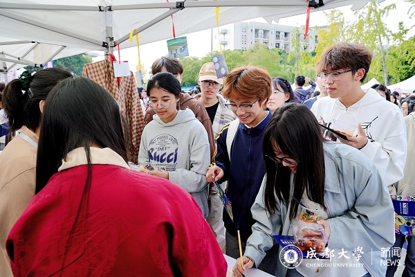 文化的探索远不止于此,随后“丝路行者盲盒探险挑战”正式开启。500份精心准备的“丝路行旅 大道同行”挑战盲盒,等待着勇敢的探险者。参与者们化身丝路商人、使者、探险家或学者,穿梭于各国展位之间。“缅甸的首都在哪里?如何用越南语问好?”通过完成一系列趣味横生的互动任务,参与的同学们不仅获得了新的知识,也解锁了异国美食的秘密。从摩洛哥的清新薄荷茶到马来西亚的醇厚仁当鸡,从俄罗斯的香甜煎饼到各式各样的异国糖果,每一站都是味蕾的惊喜,每一次尝试都是对未知文化的一次勇敢探索。