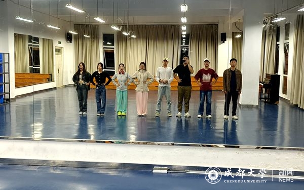 诗歌写好了,老师们开始按剧本中的人物形象着手选拔演员。最终参演《尔玛依娜的车站》的八名学生分别来自电子信息与电气工程学院、法学院等8个不同的学院,一群非科班的学生,从练习室走到国赛舞台,花了一年零一个月的时间。