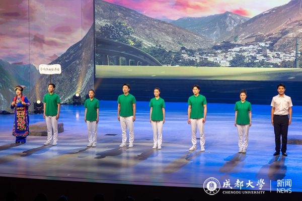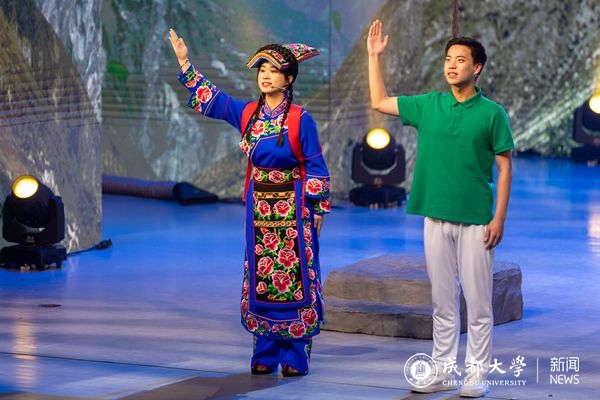 这节片段来自我校原创情景诗朗诵节目《尔玛依娜的车站》,今年6月,该节目在全国第七届大学生艺术展演活动中获朗诵组一等奖和优秀创作奖,也是今年四川省唯一入选一等奖的朗诵作品。