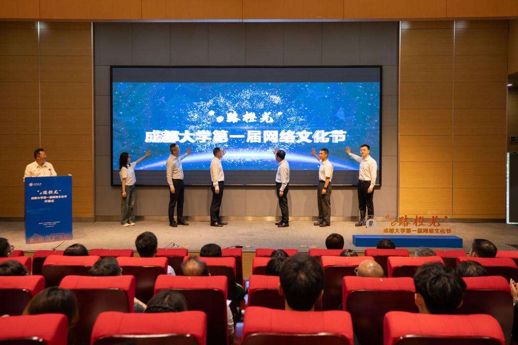 四川省委网信办副主任黎召阳,成都市委网信办副主任赵谦,党委书记、网信委主任刘强,党委副书记、校长、网信委副主任朱明出席活动并同教师代表、学生代表一同点亮“网络文化树”,正式开启学校首届网络文化节。