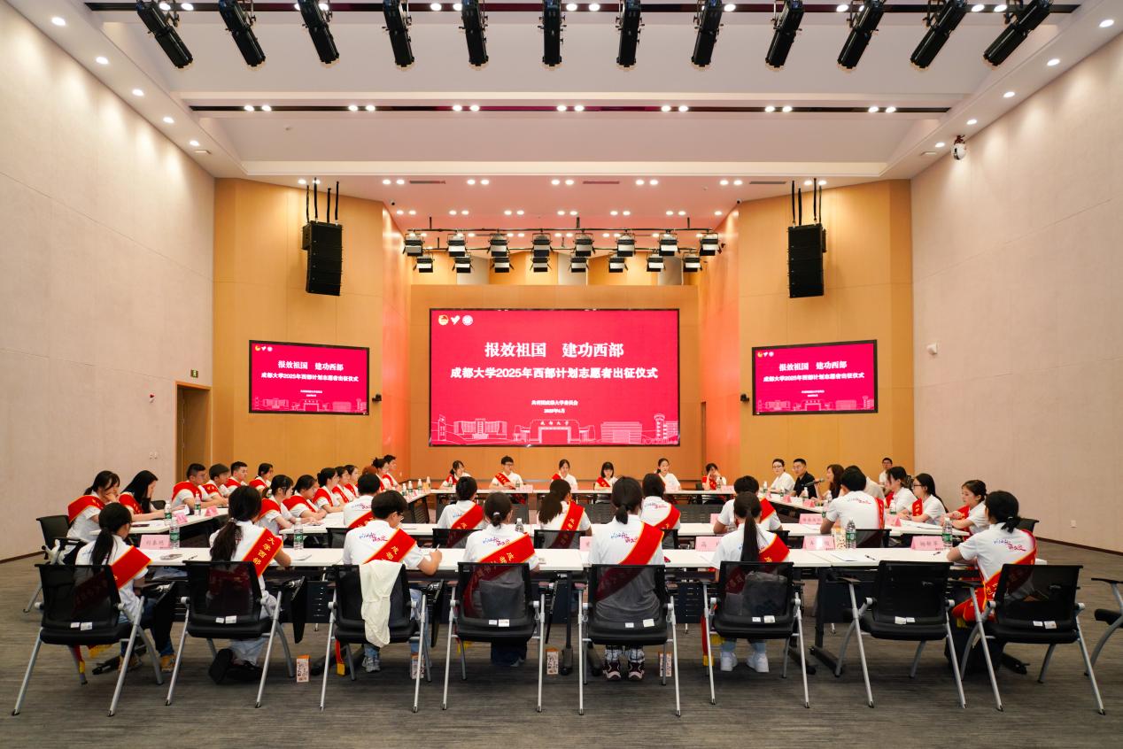 彭晓琳向入选西部计划的志愿者表示祝贺,肯定了他们积极响应国家号召,将个人理想融入国家发展大局的勇气和担当。她指出,西部计划是一项国家重大人才工程,旨在鼓励青年学子投身西部建设,促进区域协调发展,也为大学生提供锻炼自我、实现自我价值的广阔舞台。她向即将出征的西部计划志愿者提出希望:一是要心怀梦想,向下扎根,把理想信念转化为具体行动,把所学知识和实践历练相结合,把实现个人价值与社会贡献相结合;二是弘扬成大精神,以实干展现新时代青年的昂扬风貌和责任担当,在实践中增长才干,在艰苦奋斗中淬炼品格,在服务岗位上熠熠生辉;三是传递志愿温度,播撒希望火种,以乐观心态克服困难,以团结协作凝聚力量,以昂扬的斗志、饱满的热情在西部大地书写出更加壮丽的青春诗篇。