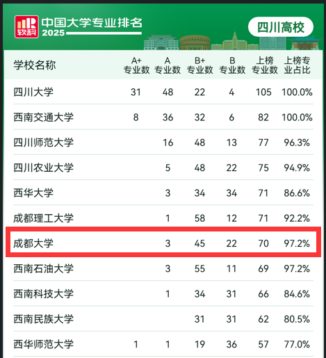 近日,高等教育专业评价机构软科发布2025“软科中国大学专业排名”。我校70个专业上榜,上榜总数位列全省高校第七。