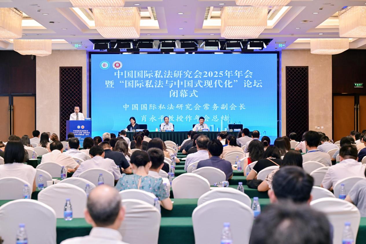 肖永平作年会总结发言。他以“成果—成事—成才”为主线,指出国际私法正从“观察者”迈向“规则贡献者”,在法治化、国际化、数智化背景下重构其学科使命。他提出四点建议:一是以守正创新之精神探索数字经济等新问题;二是以开放包容之姿在多边平台讲好中国故事;三是以脚踏实地之态在实践中发现真问题、提供真对策;四是以薪火相传之愿景厚植青年学者成长沃土。