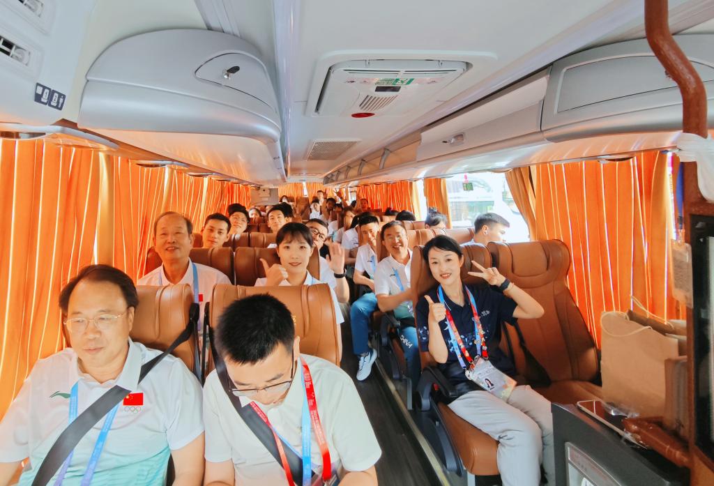 “每位运动员按座次入座,系上安全带。”燕爽是中国队的车长,她为运动员热忱地提示到。带领团队分批次完成安检流程后,迅速到岗明确车辆点位。在有序引导下,代表团成员依次通过安检、顺利登车,前往西部博览城参加开幕式。当车辆安全到达指定区域,又叮嘱人员逐一排队下车。队员们纷纷翘起大拇指,有说有笑,车里洋溢着欢乐的氛围。