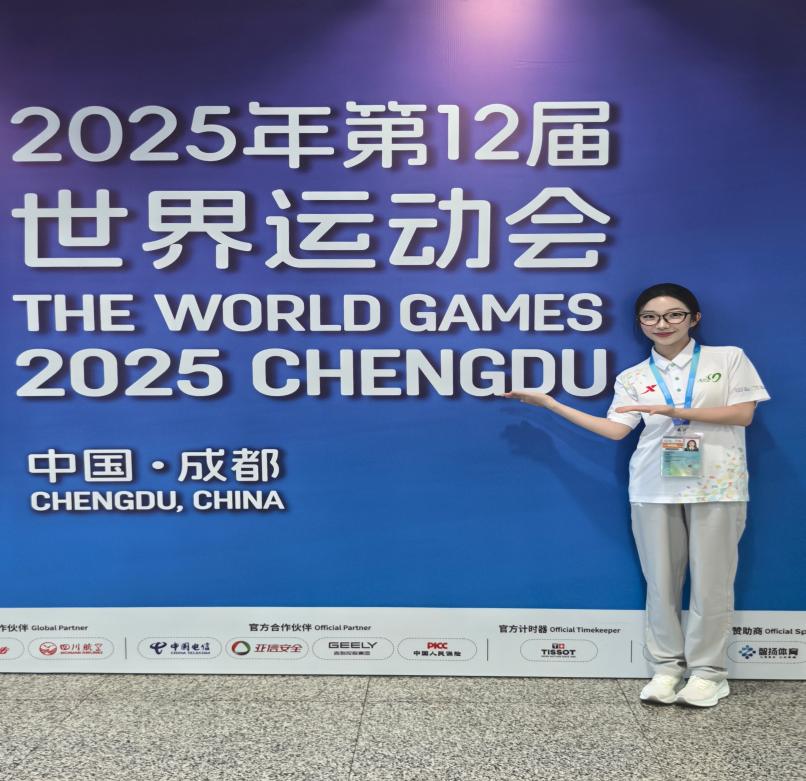 作为休闲体育专业的学生,我积极寻找志愿机会,希望将所学知识运用到实践。我曾参与过第13届中式八球国际大师赛全球总决赛、2024年四川省触式橄榄球邀请赛、2024年成都马拉松等大型体育赛事,世运会志愿服务是我服务周期最长,离赛事核心最近,让我最难忘与不舍的一次经历。