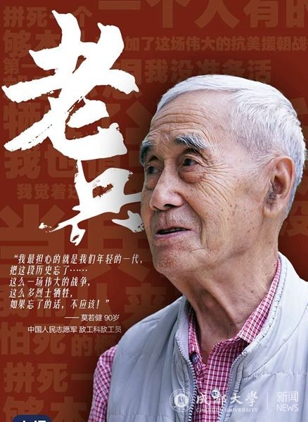 “我最担心的就是我们年轻的一代,把这段历史忘了……这么一场伟大的战争,这么多烈士牺牲,如果忘了的话,不应该!”10月26日,我校退休教师莫若健在央视新闻客户端发布的《抗美援朝70周年特辑》中铿锵有力地说。他是第一批入朝志愿军,从参战开始,他从未与家里联系过,汉城解放后,借由担架队同志回国契机,用纸烟盒写了一封家书,拜托代为寄送。他曾说“抗美援朝是我最大的精神财富”。