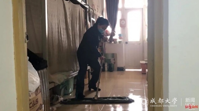 从3月15日开始,宿舍楼3栋栋长郭俊霞和其他六位工作人员,将整栋楼337间宿舍逐一打扫,帮学生们收回晾晒衣物、清理易腐坏的食品。她们说,虽然还没接到开学通知,但要把宿舍“打扫得干干净净的,等孩子们回家。”她还帮同学们寄送重要物品、包裹等,宿舍群里的学生们点赞“神仙阿姨”,都要给她“当女儿”。