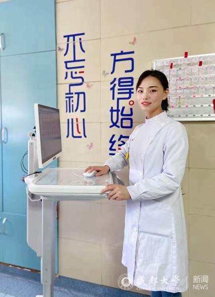 毛兰,我校2009级护理学专业校友,凯发k8官网附属医院呼吸与危重症医学科重症专科护士。2月13日作为四川省第七批援鄂医疗队成员,驻派武汉协和肿瘤中心。毛兰为人热情、细心、暖心,专业上认真完成培训并苦练技能更好地为患者服务,工作之余带领着女同事们分发管理物资,默默为团队服务。疫情面前,她是锐意进取的“实干者”,与前线同事们一起守望相助,彰显白衣天使的责任与担当。