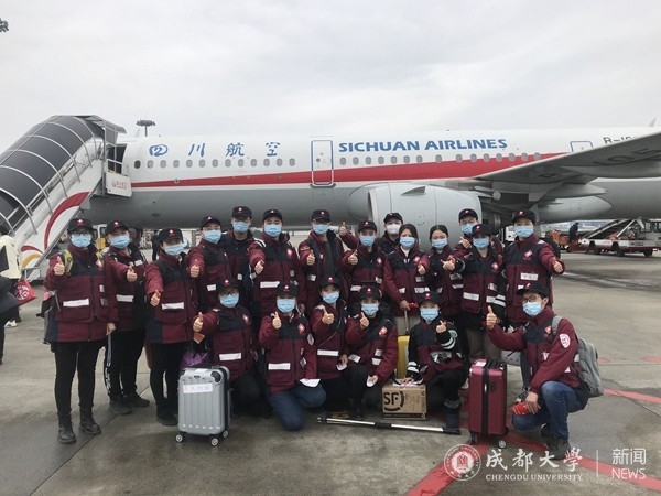2月2日,大年初九,成大附院第一批援鄂医疗队20名队员启程赴汉,接管危重症救治定点医院——武汉大学人民医院东院区9楼六病区工作,至撤离时,累计管理危重患者1439人次,康复出院及转院52人。他们与江城武汉共度了59天。2月13日,成大附院第二批援鄂医疗队28人接力出发,在危重症救治定点医院——武汉协和医院肿瘤中心9楼和10楼两个病区开展工作,在武汉度过35天。