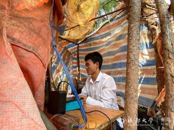 疫情期间,为了上网课,居住在凉山彝族自治州长板桥村的甲古小华克服没有通电的困难,用几根木头和编织袋,在信号最好的山坡上搭起一间“悬崖自习室”。靠一套旧的小型水力发电装置,截溪蓄水发电,接线到坡顶供电上网,最终顺利完成了长达五个月的网课。