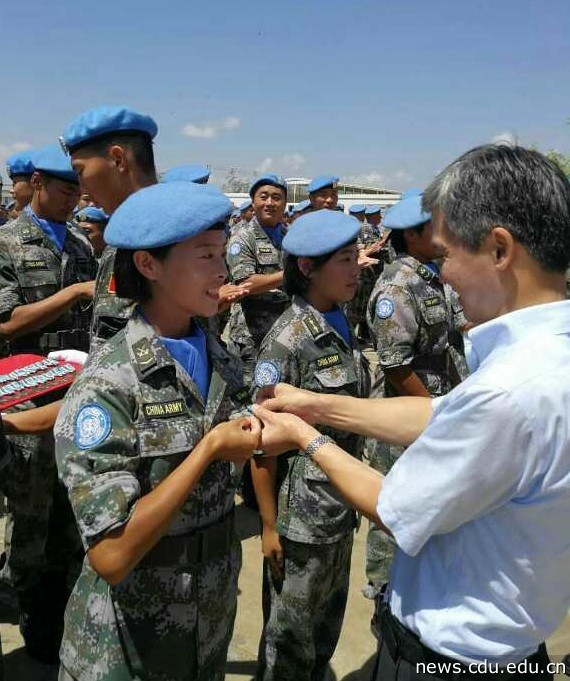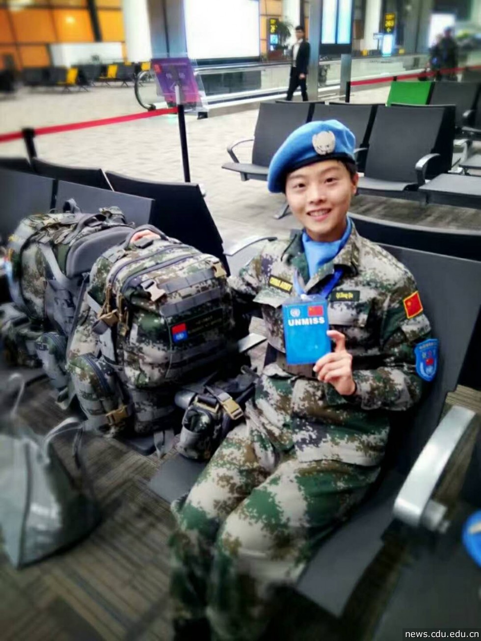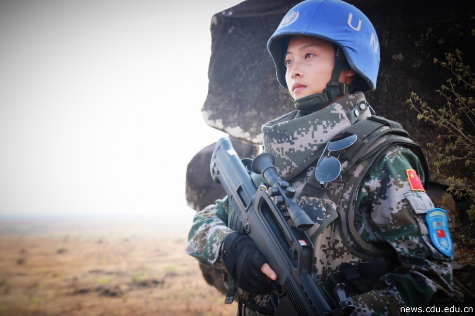 她是张钦,入伍前就读于凯发k8官网2012级广播电视学专业,中国第三批赴南苏丹(朱巴)维和步兵营女兵班战士。今年中秋,联合国驻南苏丹特派团授予中国第三批赴南苏丹(朱巴)维和步兵营全体官兵“和平荣誉勋章”,以表彰他们过去在维护南苏丹和平事业中所作贡献。