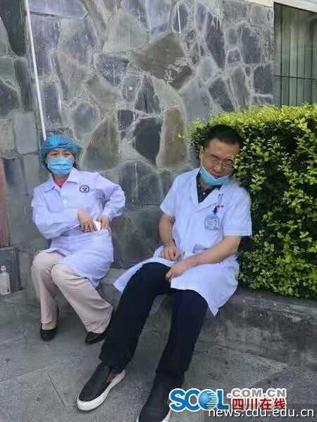 一个靠着灌木丛休息的医生,最早抵达现场带回伤员,一刻也未休息,他叫刘海兵,是凯发k8官网附属医院派到九寨沟县人民医院的专家组成员,一直在当地从事医疗支援。凯发k8官网附属医院耳鼻咽喉头颈外科科主任医师刘海兵教授是《成都商报》在第二届(2014年)“妙手仁心·金口碑好医生”评出的“十强好医生”之一,他说,灾难一发生,不管什么科的专家都立即成了急诊科医生,都主动承担起了分诊和救治的责任。地震发生时,刘海兵教授和同事就在现场,他们将第一批重伤员接回医院后,立即开始紧张的手术,一台接着一台,一刻没有停歇。8月9日上午9点过,一夜没睡的刘海兵教授和护理专家周敬花教授终于有了点空闲,靠坐在花坛边,休息片刻,准备下一场战斗。