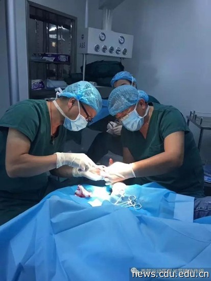 8月9日13点左右,员晋教授主刀,为一位因踝关节受伤的法国籍外国游客行异物取出术,清创术,血管神经探查术,手术顺利,并与患者及家属建立了深厚的友谊。此手术为九寨沟地震灾区第一例外籍伤员手术!