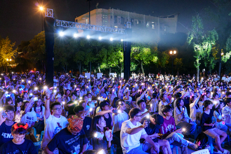 成大校友、音乐人李龙飞(DP龙猪)给大家带来歌曲《全部都是你》《风吹一夏》《一见你就冒泡》献礼毕业季,点燃全场,将晚会推向高潮。