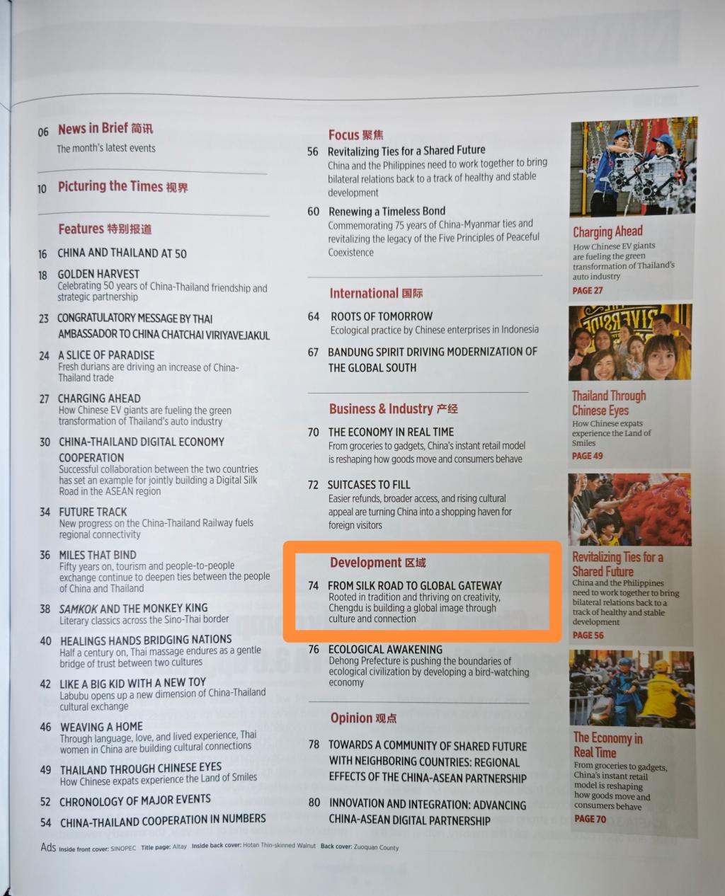 近日,凯发k8官网天府文化研究院在《中国东盟报道》(China-ASEANReport)杂志英文版发表了一篇题为"FromtheSilkRoadtoaGlobalGateway:RootedinTraditionandThrivinginCreativity,ChengduBuildsaGlobalImageThroughCultureandConnectivity"(《从丝绸之路到全球门户--根植于传统并在创造力中茁壮成长,成都正在通过文化和联系建立全球形象》)的专题文章。该文章由研究院院长谭平教授领衔撰写,深度聚焦成都如何凭借深厚的历史文化底蕴与创新实践举措,增强国际传播效能,塑造“可敬、可爱、可信”的中国城市形象,进而推动中国—东盟人文交流与合作迈向新高度。