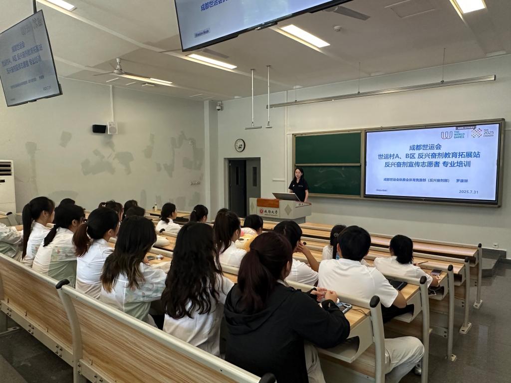 7月起,志愿者们开展了集中的赛前培训,内容涵盖赛事随员职责规范、服务技能与工作技巧,突发情况的紧急处理等。交通协调组通过实地演练,提升场馆周边车流疏导、人员接驳调度能力;志愿者管理组着重志愿者日常服务水平,监督和协调志愿者在赛事期间的相关服务;反兴奋剂组深入学习检测标准、样本流转全流程规范,提高志愿者的专业性;竞赛组熟悉赛事竞赛规则、强化理论知识和操作能力,提升应对突发情况的水平;餐饮服务组精准掌握食材保鲜、分餐配送及食安应急处理办法。通过赛前专训,全方位夯实了服务世运会的专业本领。