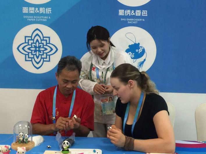 作为世运村商业休闲服务岗的志愿者,我在服务前认真参与了前期培训。从学习非遗产品的文化内涵,到涉外沟通的礼仪技巧,每一项内容都为我为后续工作打好了基础,做好了准备。上岗后,我将所学落到实处。面对外国运动员对非遗产品的好奇,我耐心讲产品的文化内涵。遇到语言沟通的小障碍,便用提前学习的简单外语搭配手势,确保交流顺畅。这段经历让我收获满满,每一次被认可的微笑,都是奉献带来的珍贵回馈。我真切认识到国际交流的重要性,不同文化在互动中相互理解。很荣幸我能为这场国际体育盛会注入澎湃的青春力量,我将继续以青春之名,让世界更加温暖与真诚,书写属于新时代中国青年的壮丽篇章。