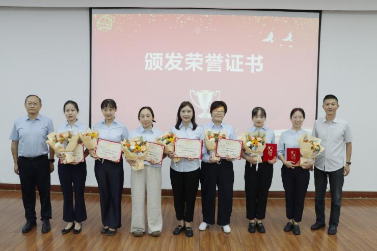 党委副书记杨滢宣读《2024-2025学年优秀教师表彰决定》,医院表彰了10名优秀理论授课教师和25名优秀临床带教教师,医院班子成员上台为获得表彰的老师们颁发荣誉证书。