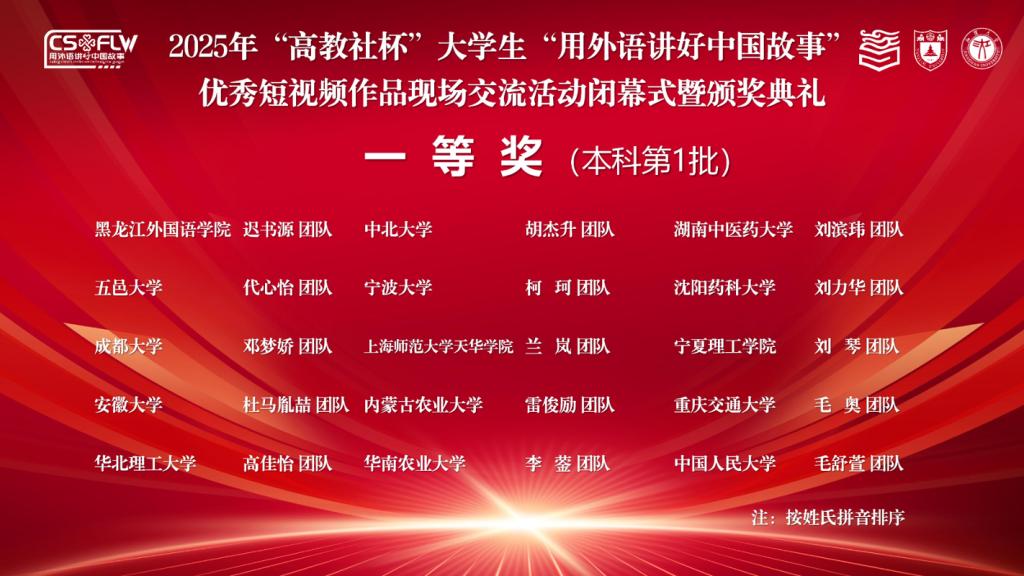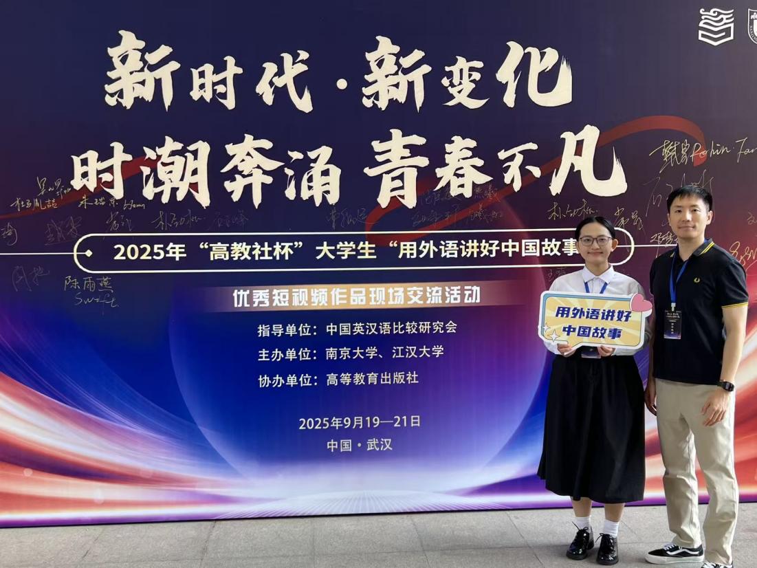 2025年“高教社杯”大学生“用外语讲好中国故事”优秀短视频作品大赛在武汉江汉大学落幕。我校学子作品“刀画新生:破局与传承”登台竞技,荣获全国一等奖。