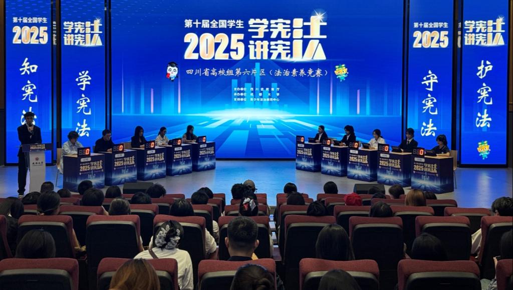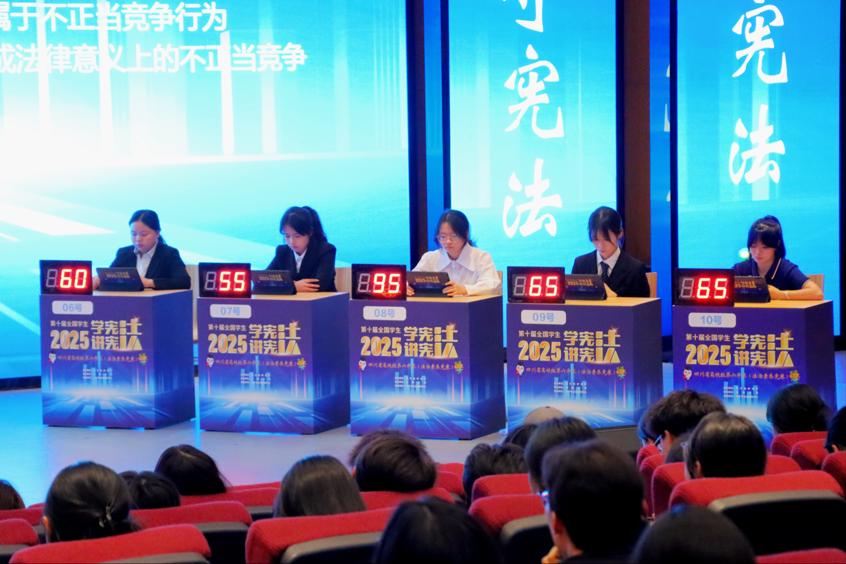 为深入学习贯彻习近平法治思想,深化青少年宪法学习宣传教育,引导青年学子做社会主义法治的忠实崇尚者、自觉遵守者、坚定捍卫者,10月14日,四川省第十届学生“学宪法 讲宪法”活动法治素养竞赛高校第六片区赛在我校第13教学楼110室举行。