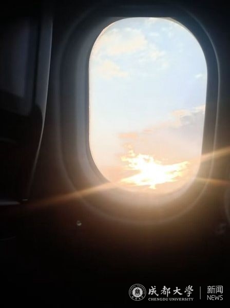 确定录取后 顾小雨拍摄的回程飞机上的阳光