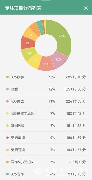 大三下学期,课程学习任务还很重,我往往只能在课后挤时间去图书馆备考。暑假期间我过着早8晚12的学习节奏,在大四上学期最后的备考冲刺中,更是实行的早上六点多起床到图书馆学习,直到图书馆闭馆才回到寝室的时间表。这一年里我几乎放弃了娱乐活动,也关闭了微信朋友圈,只为专心备考。