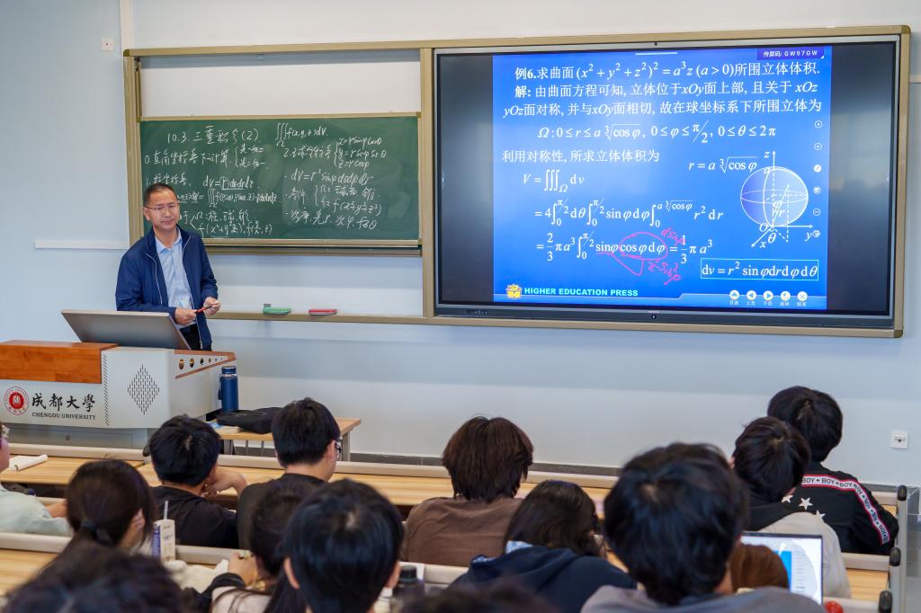 在大一上学期的高等数学课上,他用篮球来解释数学概念:篮球的飞行轨迹可以类比为“极限”,篮球到达目标的过程则是“连续”,而篮球丝滑的运行状态则对应着“可导”。到了大一下学期,面对高等数学中抽象的球坐标知识点,韩老师再次拿起篮球,巧妙地解释道:“篮球的大小、上下旋转和水平旋转,正好对应球坐标系的三大参数。”这种生动的课堂导入,让原本晦涩难懂的数学知识妙趣横生。