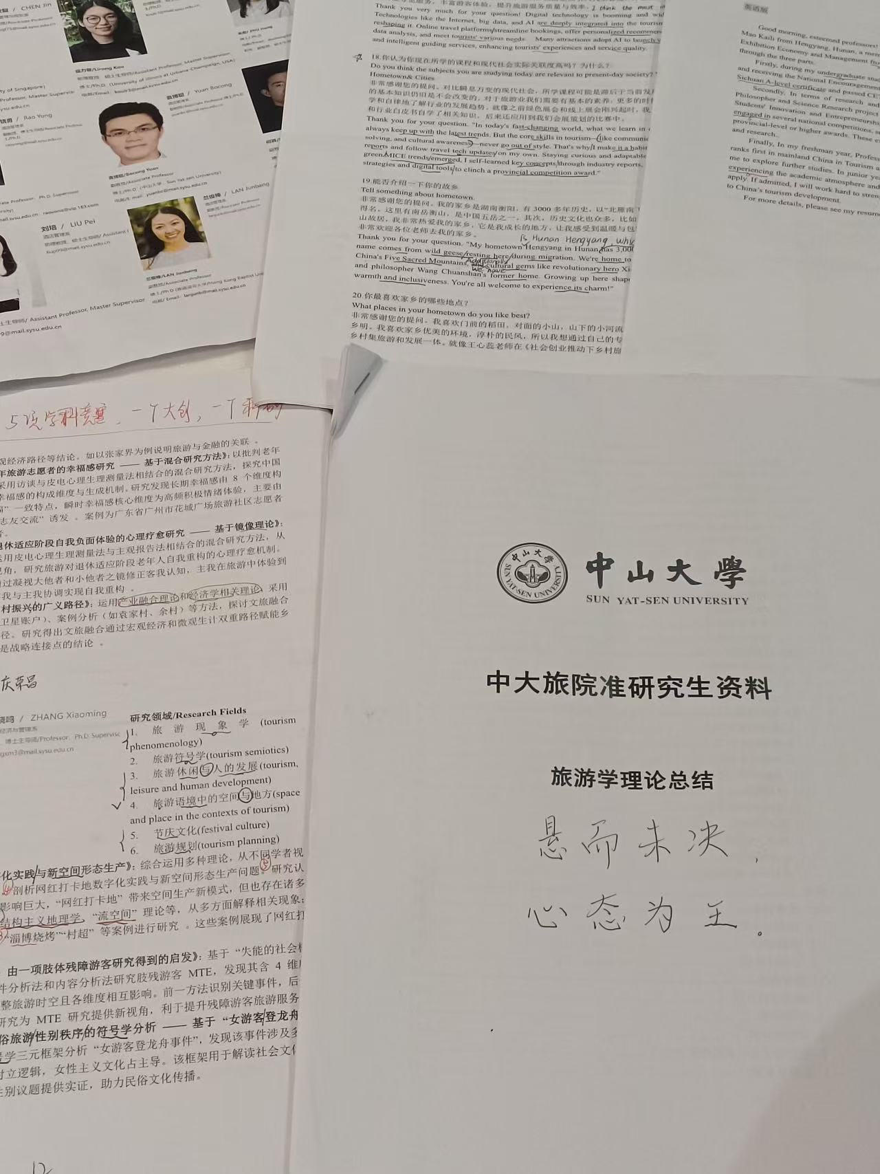 中山大学公布初试成绩时会一并公布排名,我一直以为自己连国家线都过不了,所以完全没准备复试。结果我虽然没在有效排名内,但进了复试。国家线和初试成绩是同一天出的,查到成绩后,我立马联系了学院的王雪婷老师请教复试经验。还有一直关心我的张龙翼老师、祝郁欣老师和燕爽老师。