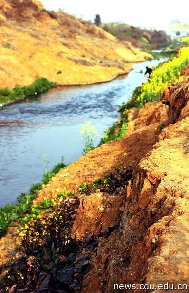 拍客 ★黎海瑞校园里的小溪、黄土、油菜花,一幅色彩浓郁的画卷。