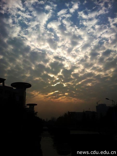 图/潘莹傍晚的张澜大道,天空、太阳给了我们最夺目景色