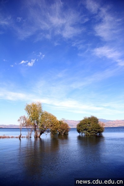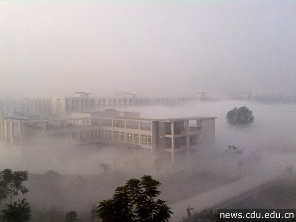 图/叶慧 晨雾环绕的成大校园,此景只应天上有。