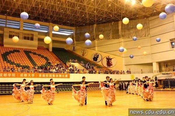 图/段迷迷首届校园集体舞比赛现场,翩翩舞姿