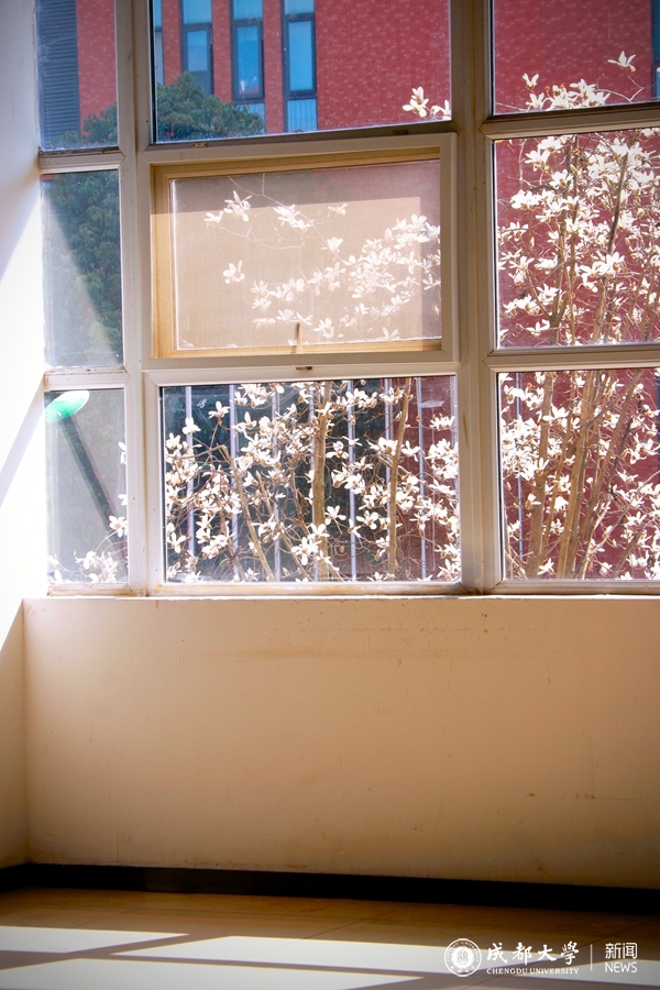 窗外的白花树在春风中摇曳,仿佛在向室内传递春天的问候
