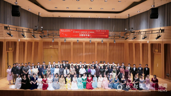 本场主题音乐会是学院党委将主题教育和学科专业建设、艺术人才培养紧密结合的重要活动和举措,在学思想、强党性、重实践、建新功的指导下,充分体现了以党务引领业务的办学思想,一是以党员师生主体参与来学思想,由学院党委主办,教工第一支部(音乐专业支部)党员老师指导或参演承办;二是以红色经典传唱来强党性,曲目均以歌颂党、歌颂祖国、歌颂家乡为主旋律,如合唱《我的祖国》、小提琴协奏《新疆之春》等等;三是以专业教学展示来重实践和建新功,音乐会也是学院音乐专业近年来教学成果的汇报展示会,表演学生包括本科四个年级和研究生三个年级,是对学院人才培养的一次检阅。