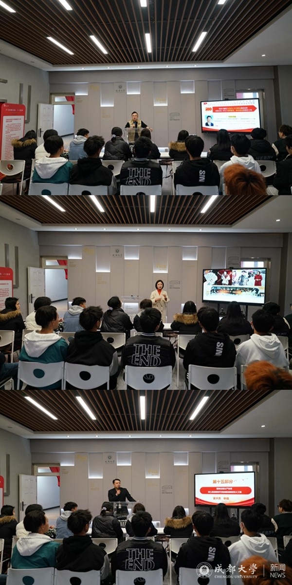 宣讲报告会上,三位宣讲团成员就党的二十大精神从不同的内容、不同的视角为师生作了全面系统、生动详实、深入浅出的宣讲报告。市广播电视台主任播音员李申建着重从“中国特色社会主义是新征程上高举的伟大旗帜、习近平新时代中国特色社会主义思想是新征程上党和国家必须全面贯彻的根本指导思想、伟大建党精神是新征程上必须传承发扬的强大精神法宝、全面建设社会主义现代化国家全面推进中华民族伟大复兴是新征程上必须坚定实现的伟大目标”四个部分对党的二十大报告主题进行了深入宣讲。市广播电视台主持人、制片人杨乾鑫主要对党的二十大报告关于文化建设的部署要求进行了宣讲,重点介绍了成都市贯彻落实党的二十大部署要求和习近平总书记关于文化建设的系列重要论述,繁荣发展文化产业、积极服务文化强国战略,扎实推进“三城三都”建设的举措和成效。市委党校党史党建教研部教师辛棋着重从“加强党的全面领导和全面从严治党的部署要求、坚定推动党的二十大部署在成都落地生根”两个部分宣讲了党的二十大报告对全面从严治党的部署要求以及成都的贯彻落实举措。