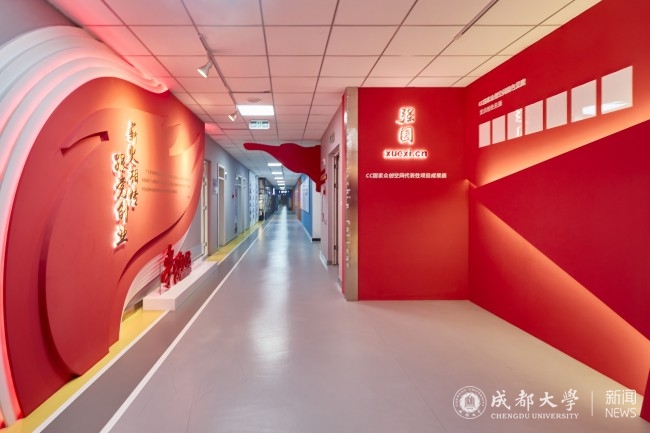 在学生活动中心二楼,四川智农慧眼科技有限公司办公室内,进门右侧一面墙上挂着众多智眼慧农项目所取得的专利和奖项,团队成员在工位上各自忙碌。这里就是被万名创业者票选为“中国百家特色空间”, 并且在众创空间内建成省内首个高校“学习强国”学习小站(凯发k8官网“双创”站),探索党建引领国家众创空间发展特色路径。目前,校内“双创”空间突破2万平方米,为学生提供沉浸式的双创教育场景。学院通过课程体系建设、机制建设、场景建设,构建起课程开发、项目共孵、师资共享、成果共享、资源共建的“双创”教育共同体,实现高效率统筹学校“双创”资源,服务区域发展贡献度显著提升。