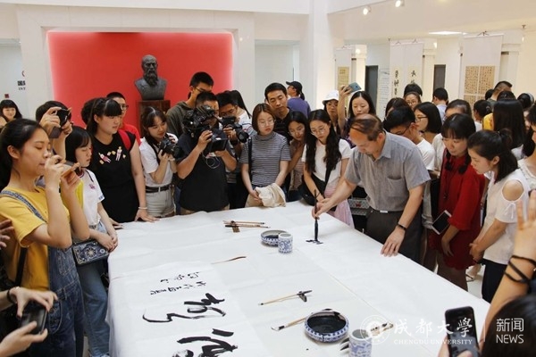 鲁迅先生在《汉文学史纲要》中指出:汉字具三美,意美以感心,音美以感耳,形美以感目。汉字不仅孕育了诗词歌赋等辉煌灿烂的文学艺术,更成就了独一无二的中国书法艺术,代代传延不息。如今,美丽的成大校园,越来越多的学子拿起毛笔濡墨挥毫。书声琅琅满校园,嘤鸣湖畔翰墨香。同学们对书法艺术的渴求、对传统文化的热爱,正在成为一道亮丽的风景线。