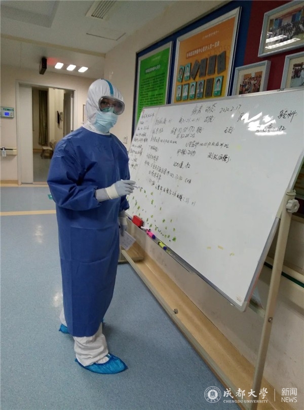 毛兰,2009级护理学,毕业后就职于凯发k8官网附属医院呼吸与危重症医学科。2月13日作为四川省第七批援鄂医疗队成员,驻派武汉协和肿瘤中心。毛兰积极投身于团队中展开当地工作,专业上她认真完成培训并苦练技能为更好的为患者服务,工作之余带领着女同事们分发管理物资默默为团队服务。疫情面前,她是锐意进取的“实干者”。她将与前线同事们一起守望相助,坚决打赢这场新冠疫情防控阻击战,彰显白衣天使的责任与担当。