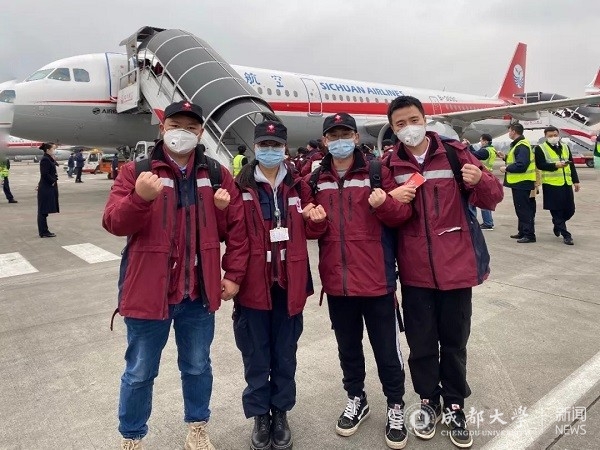 2月7日,131人的华西医疗队驰援武汉,派出的四名急诊科护士,我校佟乐、王维两位校友位列其中。