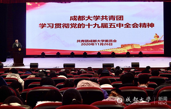 为进一步深入学习贯彻党的十九届五中全会精神,引导广大青年积极拥抱新时代、奋进新时代,在即将开启全面建设社会主义现代化国家新征程中争当先锋、勇谱新篇,把个人发展融入国家复兴大业中,与时代同频共振,11月26日,校团委在学生活动中心演播厅组织开展了学习贯彻党的十九届五中全会精神专题学习会,团委副书记刘超进行了集中宣讲,团委全体老师、各校级组织全体工作人员参加了专题学习会。