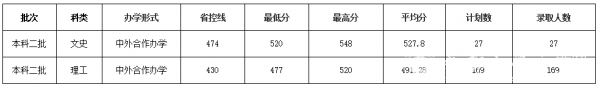 我校今年在四川本科二批普通类(中外合作办学)招生计划196人,文史类计划招生27人,录取满额;理工类计划招生169人,录取满额。具体录取情况如下: