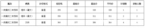 我校今年在四川一类模式本科二批预科招生计划7人。理科计划招生3人,其中藏文录取1人,彝文录取2人一志愿录取满额;文科计划招生4人,录取满额。具体录取情况如下: