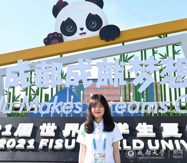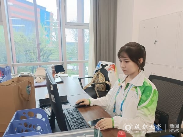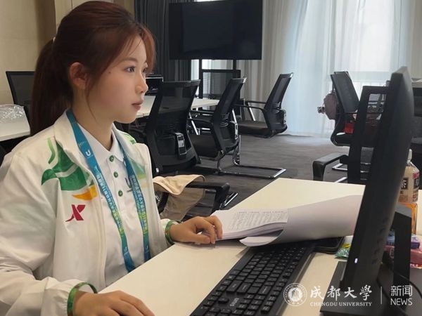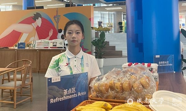 在村里,我担任的职务是欢迎注册与访客中心助理,主要负责代表团成员和访客的接待工作。欢迎中心是大运村的会客厅,是远道而来的客人抵达村子的第一站,我会以最好的精神面貌迎接每一位客人,当好东道主,展现积极向上、吃苦耐劳的成大青年形象。成为一名大运会志愿者对我而言,是大学生涯中闪闪发光的“金色苹果”。大运会志愿者这段经历,不仅是我个人价值的实现,也是我亲身实践向世界展示中国青年形象的机会。