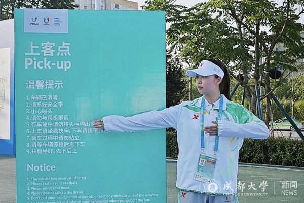 大运会是一座连接赛事与城市、青年与世界的桥,我们学生志愿者不仅是赛事的服务者,也是展示城市魅力和青春风采的靓丽名片,讲好中国故事、传播好中国声音的麦克风。我将用热情的微笑和真切的行动做好服务,以奋斗和奉献诠释青春底色,展现成大青年的良好精神风貌。