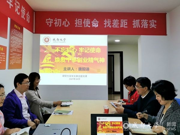 10月21日上午,党委常委、副校长唐毅谦同志以《不忘初心、牢记使命,焕发干事创业精气神》为题,在第二办公区C201向研究生处支部全体党员和非党员班子成员授课。唐毅谦全面阐述了主题教育的重大意义、总要求、根本任务和具体目标,在深入学习理论和开展调研的基础上,重点从三个方面跟大家交流自己的学习体会和收获。要牢记初心使命,以忘我境界坚定学校高水平发展的理想信念。要检视问题差距,以务实态度坚持学校高水平发展的奋斗目标。要落实重点工作,以实际行动践行学校高水平发展的改革创新。他勉励大家在学科建设与研究生招生、培养、评估各项工作中要坚定不移贯彻创新、协调、绿色、开放、共享的发展理念,以实际行动践行学校高水平发展的改革创新。