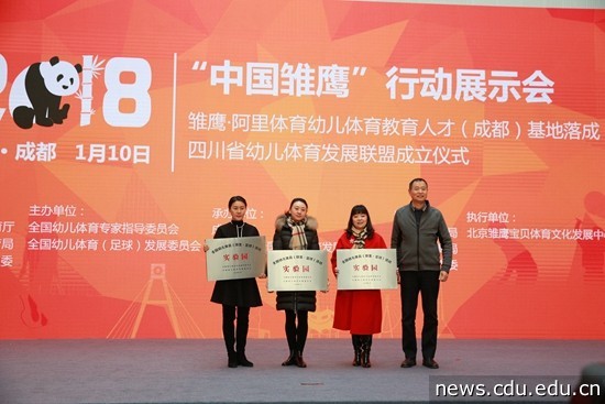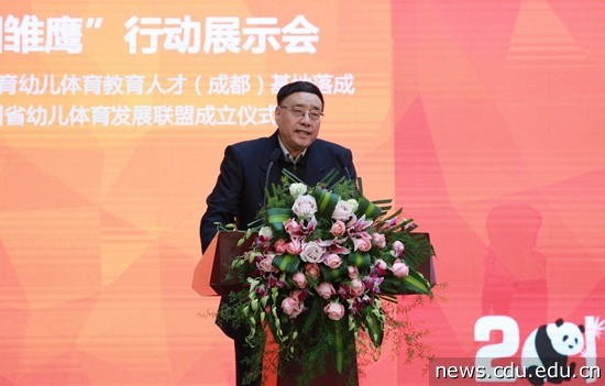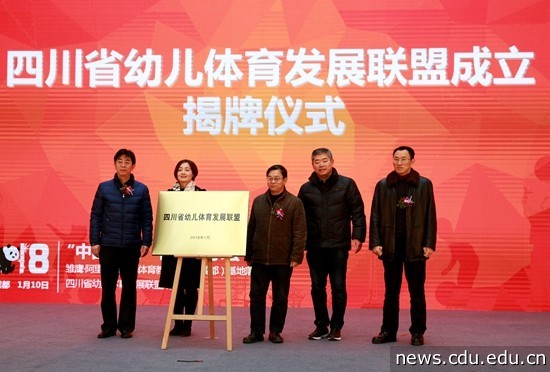 随后,李孝武、赵军、何应波、成都市教育局副巡视员夏光远、成都市教育局学前教育处处长林一帆为四川省幼儿体育发展联盟揭牌。王清远为理事长、副理事长单位授牌。