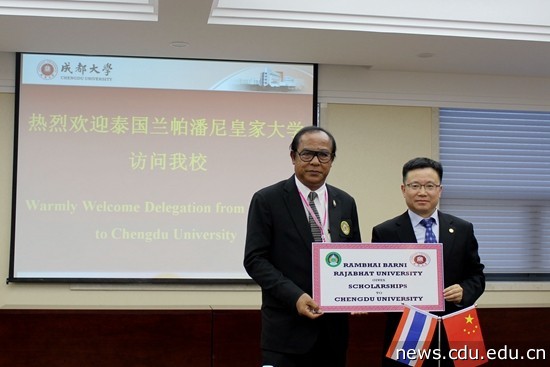 国际合作与交流处、政治学院、美术与影视学院、四川省泰国研究中心、医学院(护理学院)、信息科学与工程学院和文学与新闻传播学院的负责人参加会谈。泰国尖竹汶府府尹及兰拍帕尼皇家大学校长代表团一行会后参观了美术与影视学院、外国语学院和医学院(护理学院)。