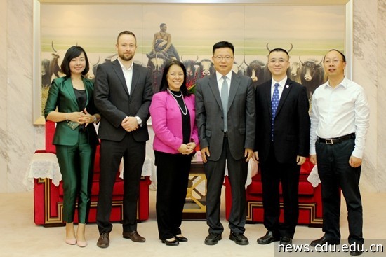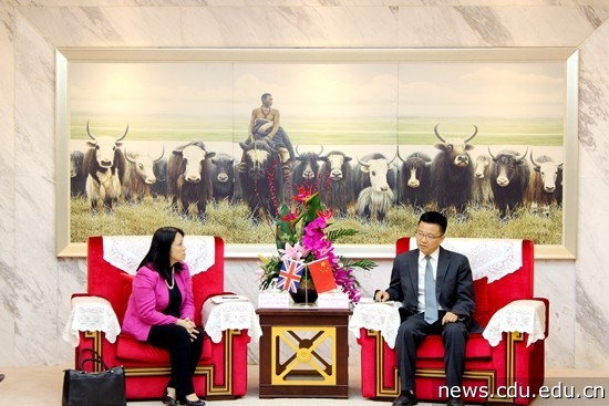 本网消息(文/刘海 图/于佳霖)5月16日,校长王清远在贵宾厅会见了英国驻重庆总领事馆总领事塞西尔?艾佩诗。