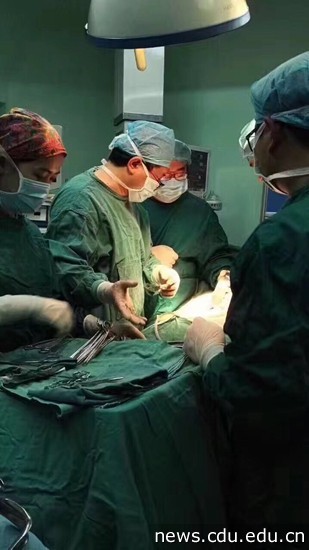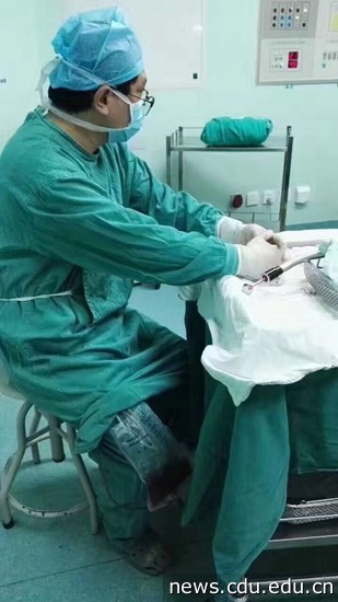 袁家天老师的生活节奏一字以概之——忙。他负责的病人,常年保持同一时间在20人甚至更多,每天一次的查房是必须的。每周二,他还要奔波近赶往郫县人民医院的坐诊,仅路上就要耗费近一个半小时的时间。他还承担着为临床专业医学生授课的教学工作,大一到大五年级,都有。执刀做手术那更是家常便饭,凌晨遇到手术也是常有的事。有时,下了手术就直接在医院睡了,第二天一早又开始工作。