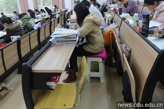 晚上9点半,上晚自习的同学们陆续离开。赵阿姨又要开始工作了。这是一天最重要的收尾,也是工作量最大的时刻,她要进行一次地毯式的清扫扫。自习教室面积大,每一张桌椅下面,每一个抽屉里面,都要一一检查,把垃圾掏出来。同学们自带的纸箱、小凳、椅子、保暖的棉衣挤满了教室的多数座位。她都要一一挪开,再一一清扫,然后再归位。就这样,一间一间……垃圾很多,赵阿姨太疲惫,刚坐下一小会儿,又赶紧起身继续,强打起精神。曾经有一次,当她做完所有工作,已经是凌晨1点了。